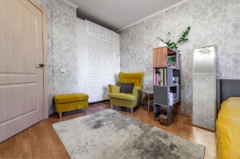 Вид из окон - на детскую площадку и зелёный двор. Юго-восточное расположение окон квартиры не оставит вас без солнца.