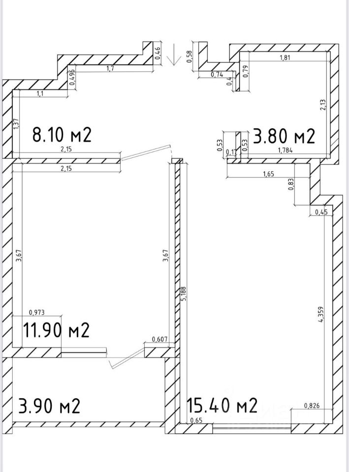 15,4 м²