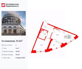 Удобная, классическая, функциональная европланировка, большая кухня-гостиная 14.49 м², просторная прихожая 6.12 м². Общая площадь квартиры - 34.3 м², жилая 10.1 м², высота потолка 3 м.