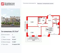 Продается просторная 2-комнатная квартира от застройщика в жилом комплексе "Империал Клаб" в уютном Василеостровском районе.