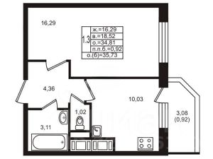 В ванной свободно помещается стиральная машинка, а так же остается место для шкафа или сушильной машины.