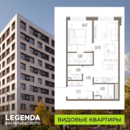 Просторная 1-комн. квартира с предчистовой отделкой в ЖК "LEGENDA Васильевского" на 3 этаже. Общая площадь: 48.96 кв.м., жилая: 10.07 кв.м., площадь просторной кухни-столовой: 20.19 кв.м. Все окна выходят на одну сторону. В квартире один совмещенный санузел. Высота потолков 2.72 м.
