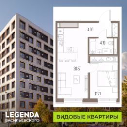 Продается 1-комн. квартира с предчистовой отделкой в ЖК "LEGENDA Васильевского" на 8 этаже. Общая площадь: 40.27 кв.м., жилая: 11.21 кв.м., площадь просторной кухни-столовой: 20.87 кв.м. Все окна выходят на одну сторону. В квартире один совмещенный санузел. Высота потолков 2.72 м.
