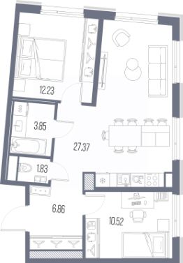 2-комн. квартира с предчистовой отделкой в ЖК "LEGENDA Васильевского" на 4 этаже. Общая площадь: 62.66 кв.м. Высота потолков 2.72 м.