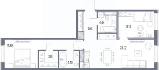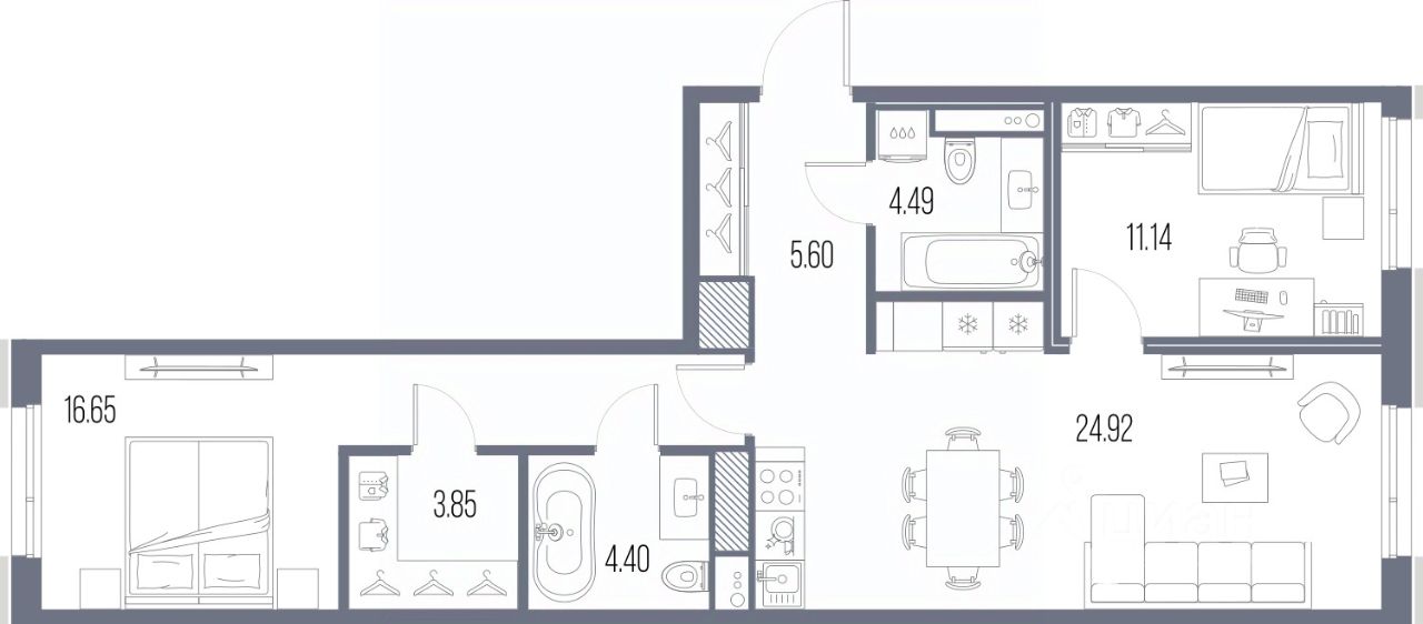 Продается 2-комн. квартира от застройщика с предчистовой отделкой в ЖК "LEGENDA Васильевского" на 3 этаже. Общая площадь: 71.05 кв.м. Высота потолков 2.72 м.