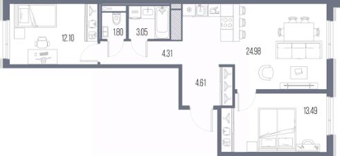 Продается двухкомнатная квартира от застройщика с предчистовой отделкой в ЖК "LEGENDA Васильевского" на 5 этаже. Общая площадь: 64.34 кв.м. Высота потолков 2.72 м.