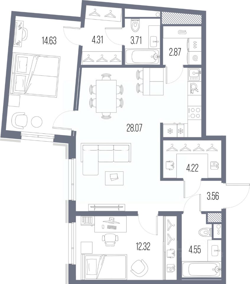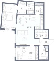 2-комн. квартира с предчистовой отделкой в ЖК "LEGENDA Васильевского" на 5 этаже. Общая площадь: 78.24 кв.м. Высота потолков 2.72 м.