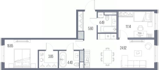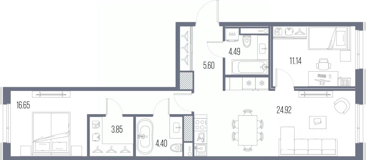 2-комн. квартира от застройщика с предчистовой отделкой в ЖК "LEGENDA Васильевского" на 4 этаже. Общая площадь: 71.05 кв.м. Высота потолков 2.72 м.