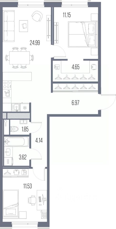 Продается 2-комн. квартира с предчистовой отделкой в ЖК "LEGENDA Васильевского" на 6 этаже. Общая площадь: 68.9 кв.м. Высота потолков 2.72 м.
