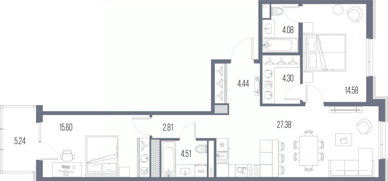 Двухкомнатная квартира от застройщика с предчистовой отделкой в ЖК "LEGENDA Васильевского" на 7 этаже. Общая площадь: 77.7 кв.м. Высота потолков 2.72 м.