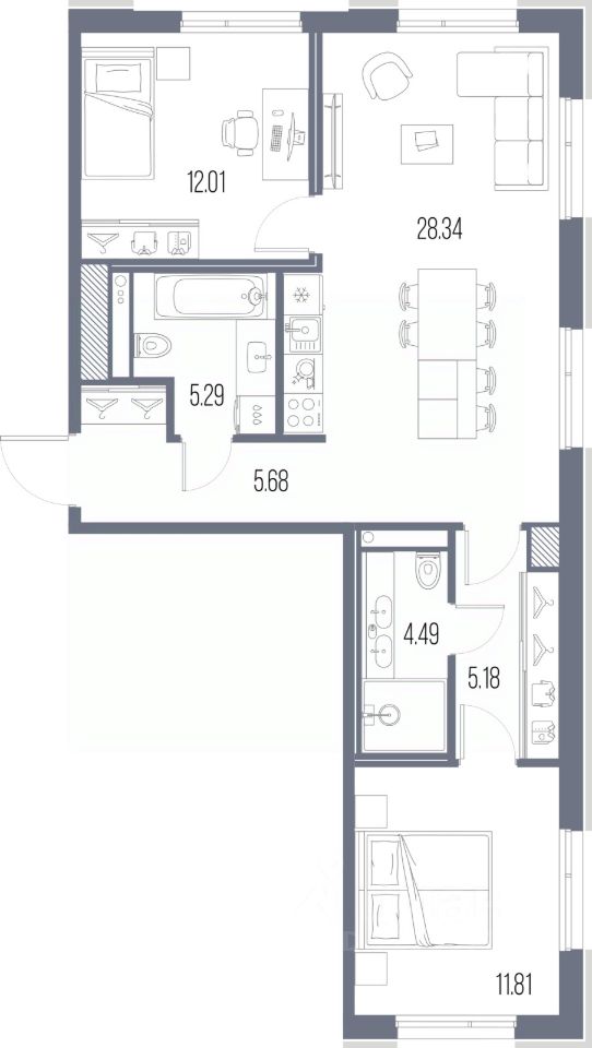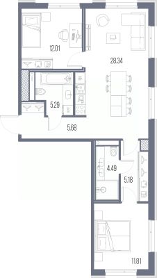 Продается 2-комн. квартира от застройщика с предчистовой отделкой в ЖК "LEGENDA Васильевского" на 8 этаже. Общая площадь: 72.8 кв.м. Высота потолков 2.72 м.
