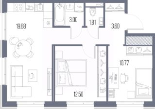 Двухкомнатная квартира от застройщика с предчистовой отделкой в ЖК "LEGENDA Васильевского" на 8 этаже. Общая площадь: 55.23 кв.м. Высота потолков 2.72 м.