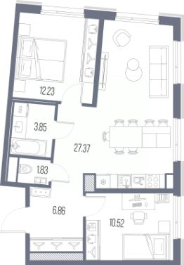 Продается 2-комн. квартира от застройщика с предчистовой отделкой в ЖК "LEGENDA Васильевского" на 8 этаже. Общая площадь: 62.66 кв.м. Высота потолков 2.72 м.