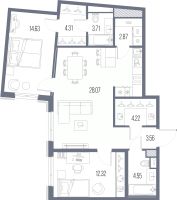 Продается 2-комн. квартира с предчистовой отделкой в ЖК "LEGENDA Васильевского" на 9 этаже. Общая площадь: 78.24 кв.м. Высота потолков 2.72 м.