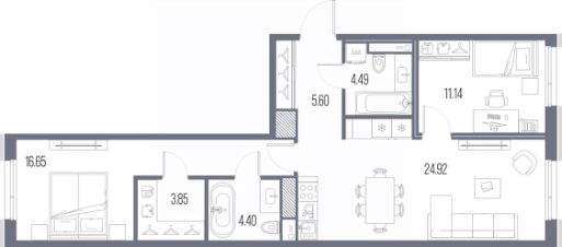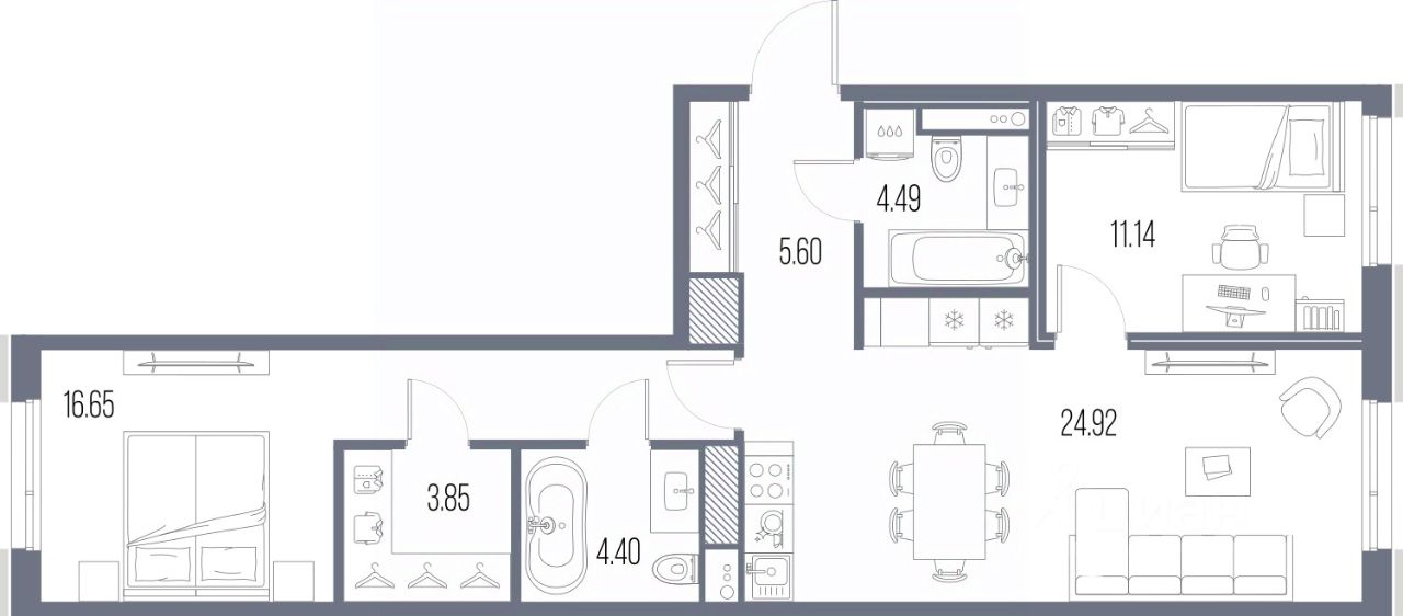 2-комн. квартира с предчистовой отделкой в ЖК "LEGENDA Васильевского" на 8 этаже. Общая площадь: 71.05 кв.м. Высота потолков 2.72 м.