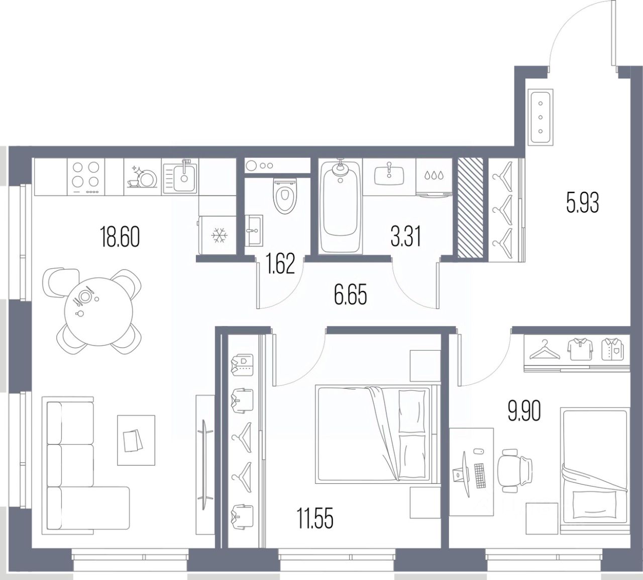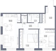 Продается 2-комн. квартира от застройщика с предчистовой отделкой в ЖК "LEGENDA Васильевского" на 8 этаже. Общая площадь: 57.56 кв.м. Высота потолков 2.72 м.