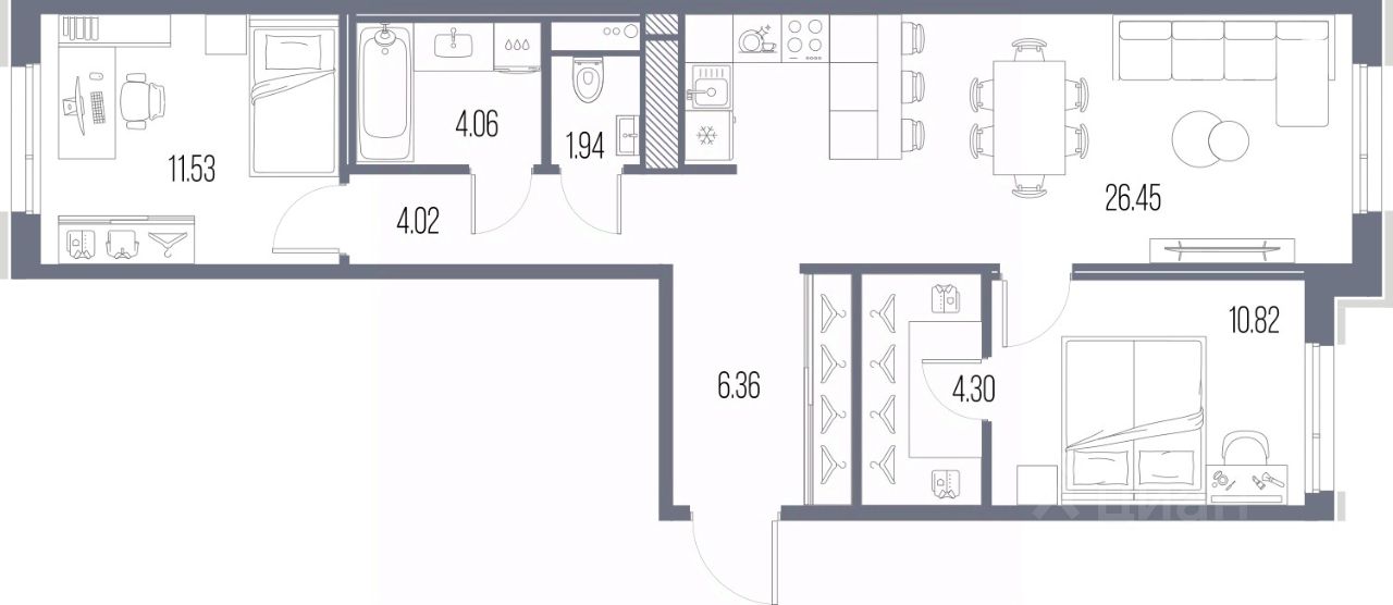 2-комн. квартира с предчистовой отделкой в ЖК "LEGENDA Васильевского" на 9 этаже. Общая площадь: 69.48 кв.м. Высота потолков 2.72 м.