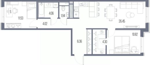 Просторная 2-комн. квартира с предчистовой отделкой в ЖК "LEGENDA Васильевского" на 10 этаже. Общая площадь: 69.48 кв.м. Высота потолков 2.72 м.