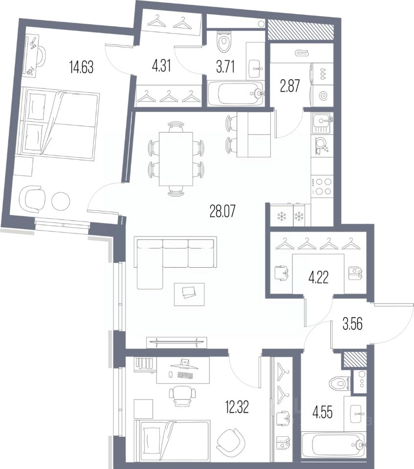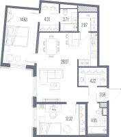Двухкомнатная квартира с предчистовой отделкой в ЖК "LEGENDA Васильевского" на 10 этаже. Общая площадь: 78.24 кв.м. Высота потолков 2.72 м.