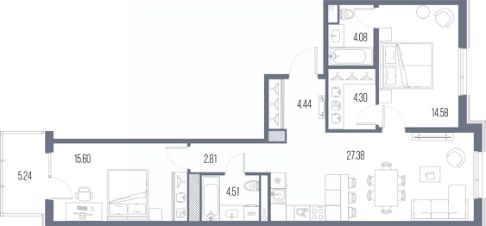 Просторная двухкомнатная квартира с предчистовой отделкой в ЖК "LEGENDA Васильевского" на 10 этаже. Общая площадь: 77.7 кв.м. Высота потолков 2.72 м.