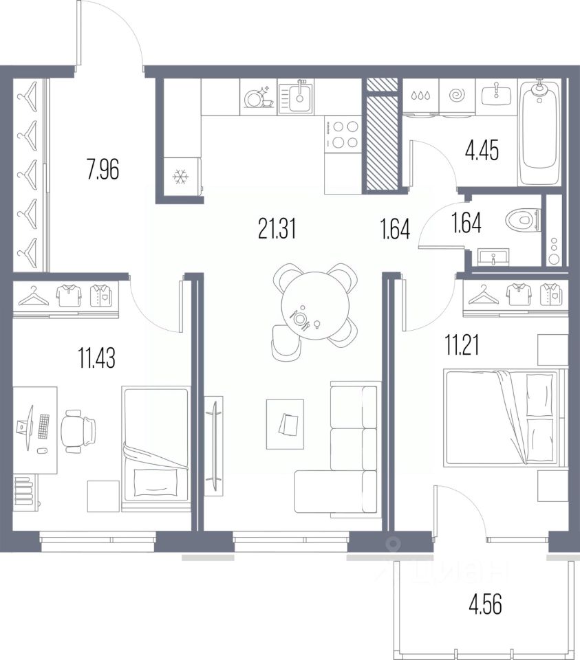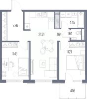 2-комн. квартира от застройщика с предчистовой отделкой в ЖК "LEGENDA Васильевского" на 10 этаже. Общая площадь: 59.64 кв.м. Высота потолков 2.72 м.