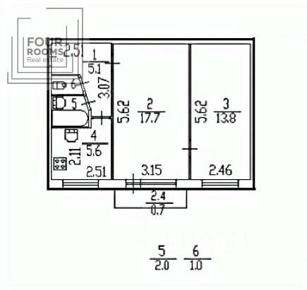 Общая площадь — 45 м², комнаты 18 и 14 м². кухня — 6 м².