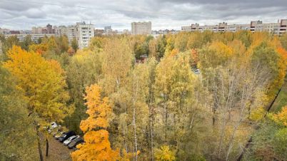 Квартира ориентирована окнами на северо-восток - вид на двор, который утопает в зелени деревьев.