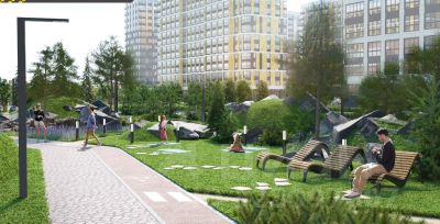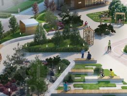 Внутри квартала построят школу на 1550 учеников и три детских сада, которые вместят 650 малышей. В соседних жилых комплексах уже работают детский сад и школа с двумя бассейнами. Квартал объединит пешеходный променад, по которому можно будет неспешно прогуляться до набережной и главной площади. Там появятся разноплановые зоны отдыха: городские качели, удобные лежаки, лужайка для йоги, амфитеатр со сценой.