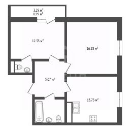 * Функциональная планировка. Планировка на две стороны обеспечивает хорошую проветриваемость.
