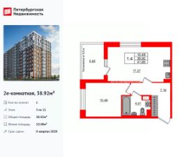 Удобная, классическая, функциональная европланировка, большая кухня-гостиная 17.27 м², просторная прихожая 7.16 м². Общая площадь квартиры - 38.92 м², жилая 10.48 м², высота потолка 2.77 м.