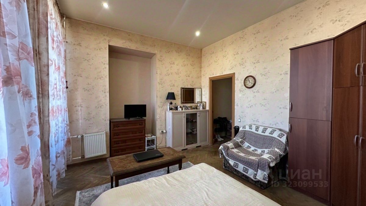В продаже светлая комната с балконом на Центр Петербурга на 6-м этаже шестиэтажного дома, построенного в 1911 году (межэтажные перекрытия: металлические балки), в просторной 8-комнатной квартире общей площадью 227,2 метра. Из окон открывается красивый вид на Троицкий собор и Измайловский проспект . Площадь комнаты: 26,6 кв. м., разделена перегородкой на 2 комнаты.