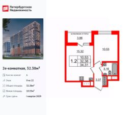 Удобная, классическая, функциональная европланировка, большая кухня-гостиная 15.32 м², вместительная прихожая 3.37 м². Общая площадь квартиры - 32.38 м², жилая 10.53 м², высота потолка 2.77 м.
