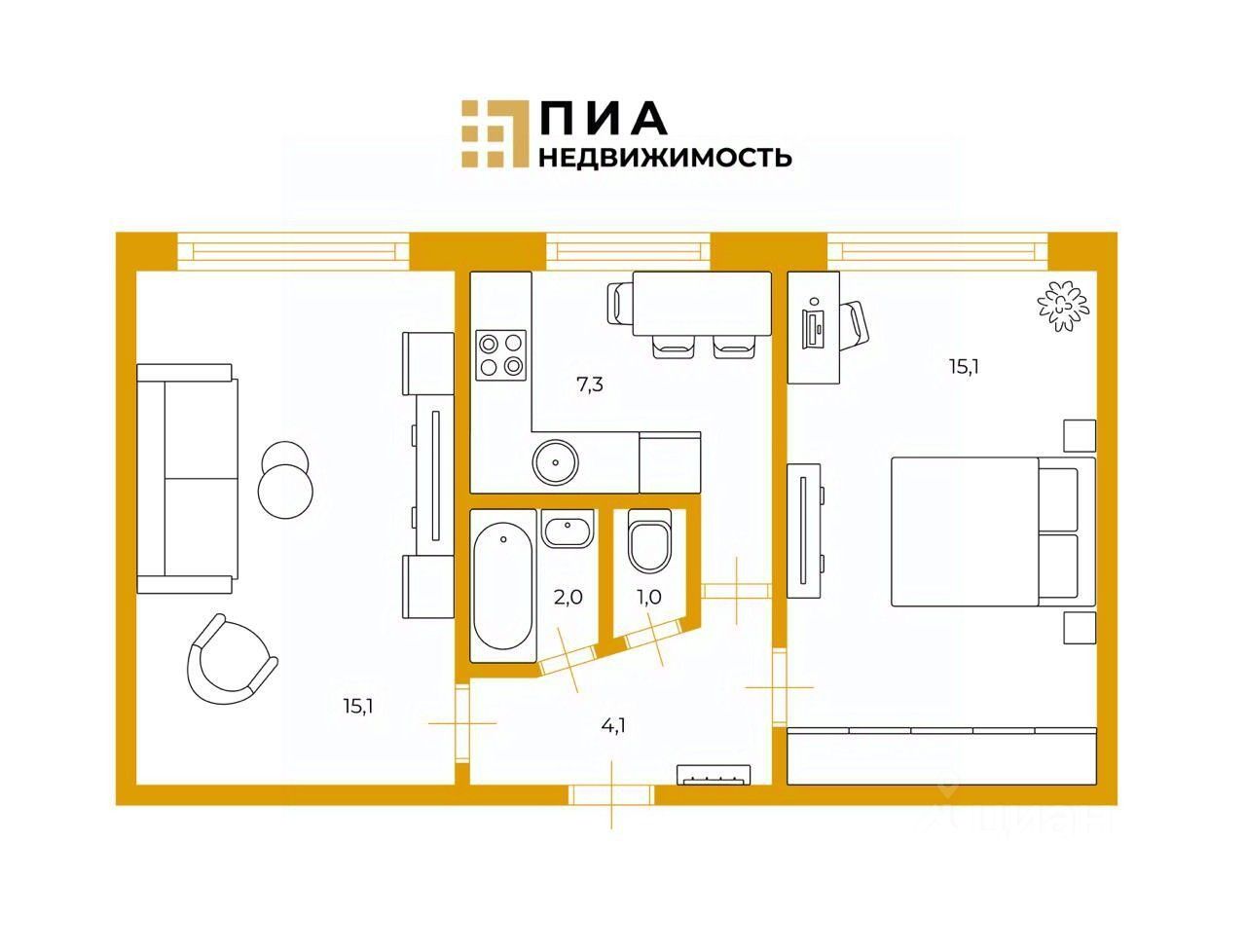 • Изолированные, светлые комнаты — по 15,1 м² каждая