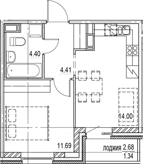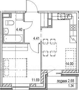 Продается однокомнатная квартира с видом на парк, площадью 34,5 квадратных метров. Без отделки.