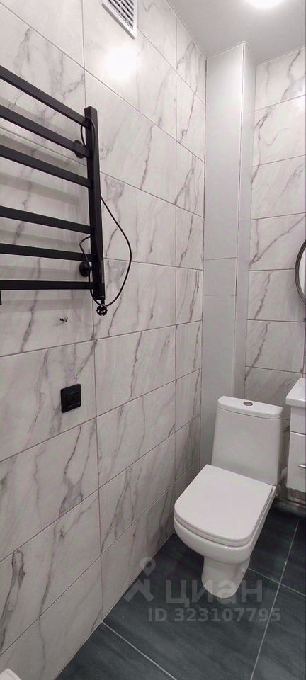Сделан очень хороший, добротный ремонт с использованием качественных материалов. В прихожей на полу , в санузле на полу и стенах выложена плитка современного дизайна. Стильные смесители черного цвета сочетаются с черными дверными ручками.