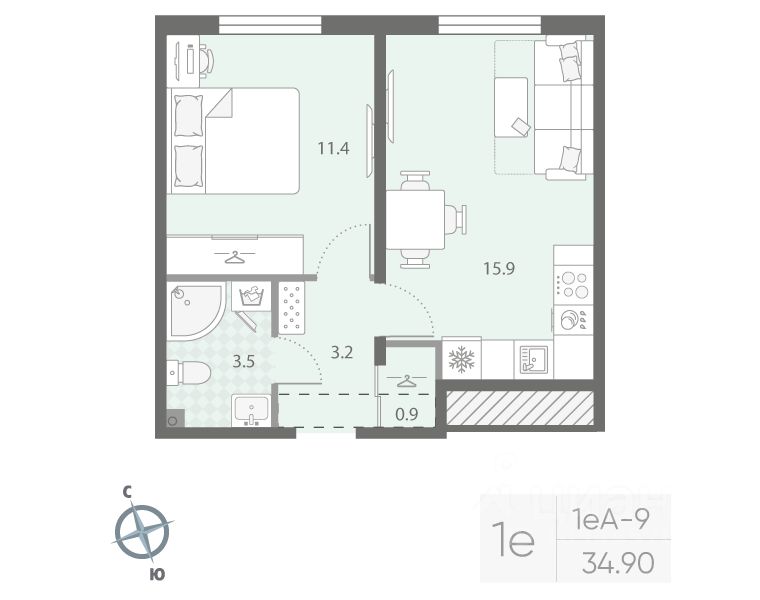 Продается 1-комнатная квартира в ЖК "Дыбенко Парк" на 3 этаже. Общая площадь составляет 34.90 кв. м. Квартира с чистовой отделкой. Жилой комплекс располагается по адресу Санкт-Петербург, проспект Товарищеский.