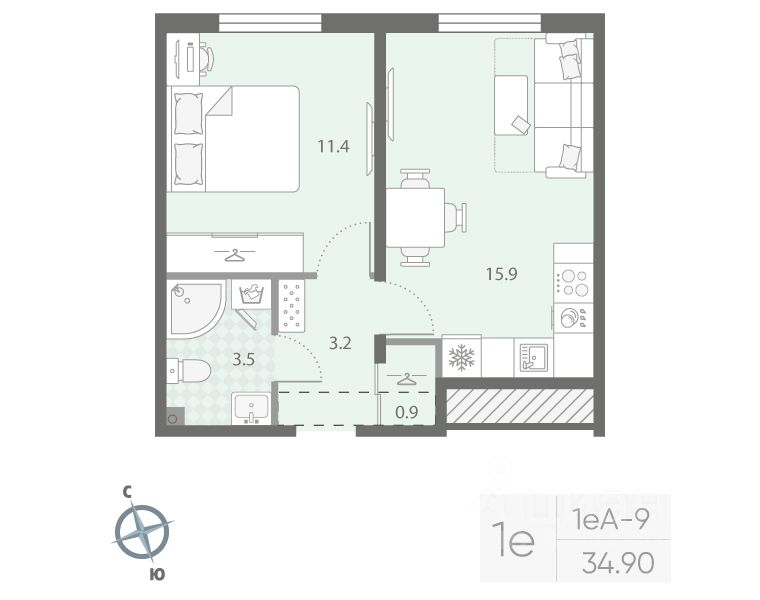 Продается 1-комнатная квартира в ЖК "Дыбенко Парк" на 18 этаже. Общая площадь составляет 34.90 кв. м. Квартира с чистовой отделкой. Жилой комплекс располагается по адресу Санкт-Петербург, проспект Товарищеский.