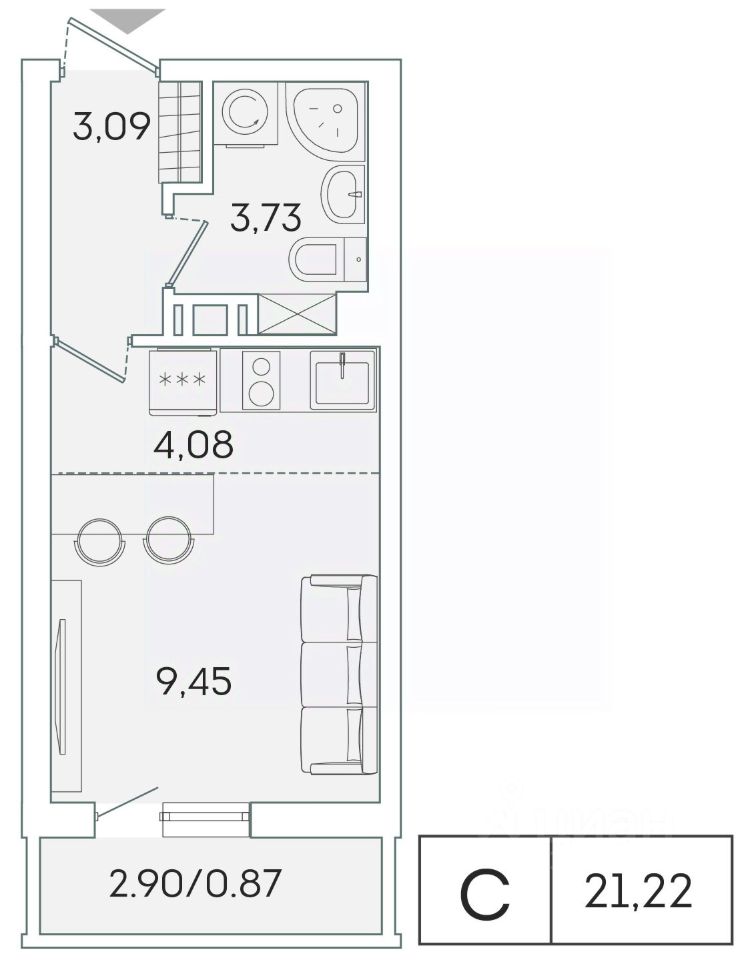 В продаже от застройщика студия 20.3 кв. м с черновой отделкой и практичной планировкой для удобной организации пространства. Корпус сдан