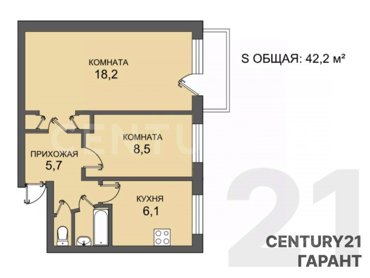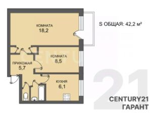 Светлая, тёплая и функциональная квартира 42,2 м² + балкон 3 м² на комфортном 3 этаже 5-этажного дома.