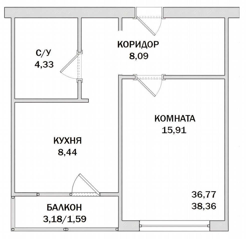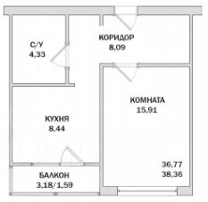 Просторная уютная однокомнатная квартира общей площадью 36.5 кв. М.