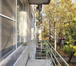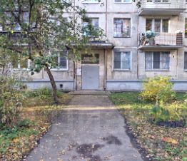 Расположен в удалении от улицы, окружен большим количеством деревьев и кустарников. Придомовая территория с детскими площадками, местами для отдыха и прогулочной зоной. Вход в парадную со стороны улицы. Система домофонов. На лестничной площадке 4 квартиры. 1 пассажирский лифт!!!
