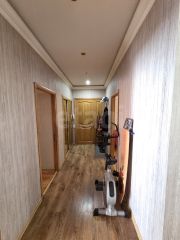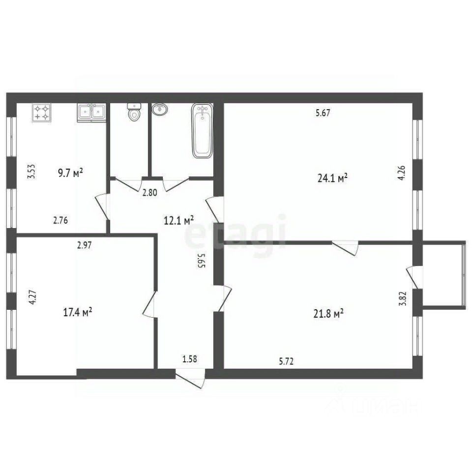 Общая жилая площадь распределена между тремя комнатами: 24,1м², 21,8 м² и 17,4 м², что обеспечивает приватность для каждого члена семьи. Окна выходят на две стороны — на тихий двор и на улицу, гарантируя оптимальный баланс естественного освещения и спокойной атмосферы. Планировка функциональна и создает ощущение простора.