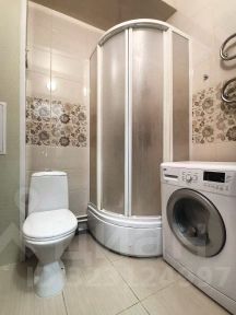 Всё для жизни: стиральная машина, душевая кабина, застеклённый балкон с зоной отдыха и шкафом руной работы, модем для интернета.