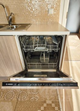Квартира укомплектована всей необходимой мебелью и техникой для проживания. Кухня со встроенной техникой (посудомоечная машина, варочная поверхность, вытяжка, микроволновая печь, холодильник, стиральная машинка). Установлена система умный дом.