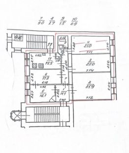 У комнаты очень удобное расположение в квартире. Она граничит с ванной и туалетом. В ванной есть место для установки стиральной машины с вертикальной загрузкой. На кухне на окнах так же установлены стеклопакеты, есть собственная газовая плита и стол со шкафами. С кухни имеется выход на черную лестницу.