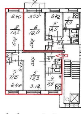 Общая площадь 58,4 м2, две изолированные комнаты 11 м2 и 13,5 м2, проходная комната 19,3 м2 с балконом. Имеется кладовка. Установлены стеклопакеты, паркет можно реставрировать. Окна выходят на улицу и в просторный зеленый двор. Перепланировок нет.