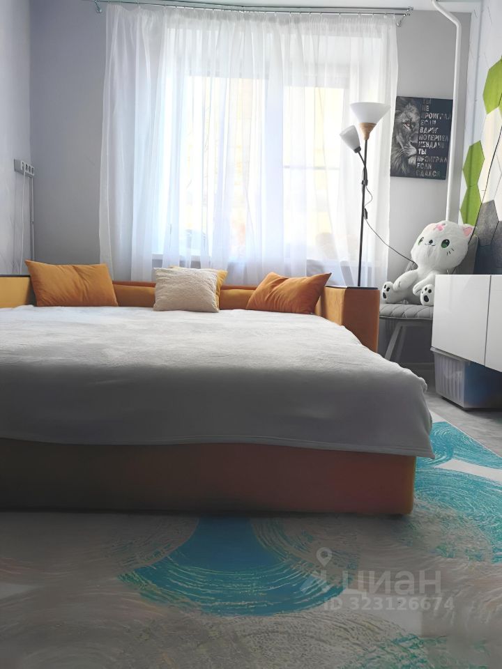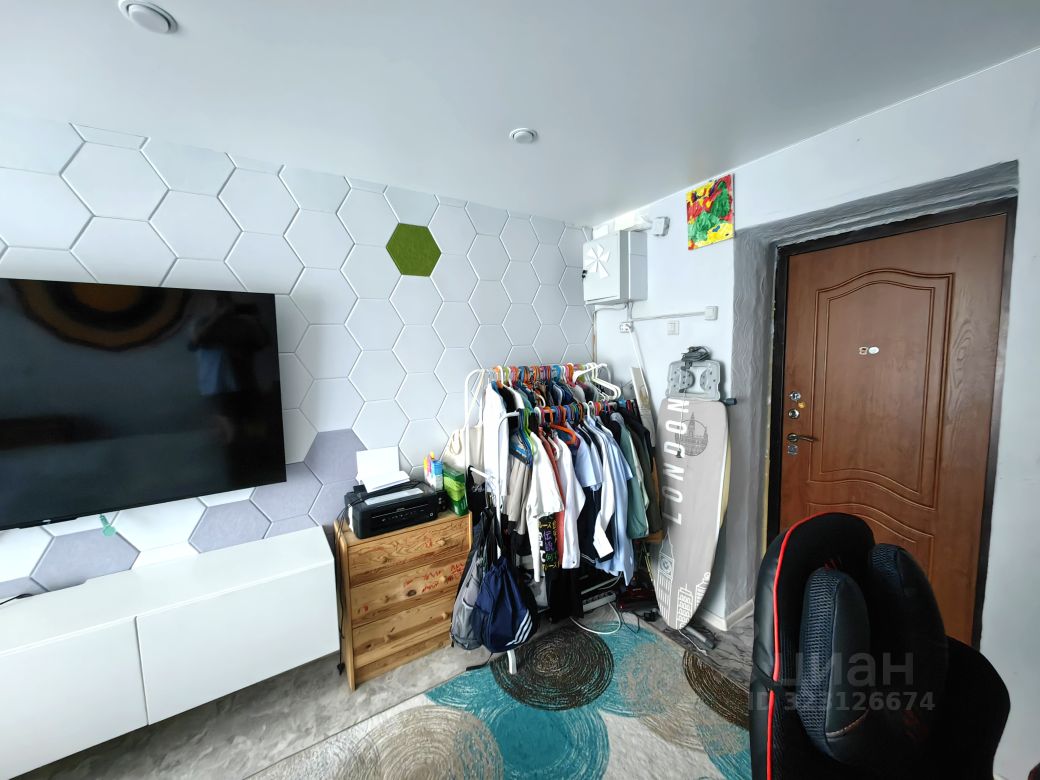 Что остается покупателю: диван, полка книжная (на фото - над компьютерным столом), рейл для одежды, комодик деревянный, торшер, кухонный гарнитур на кухне.