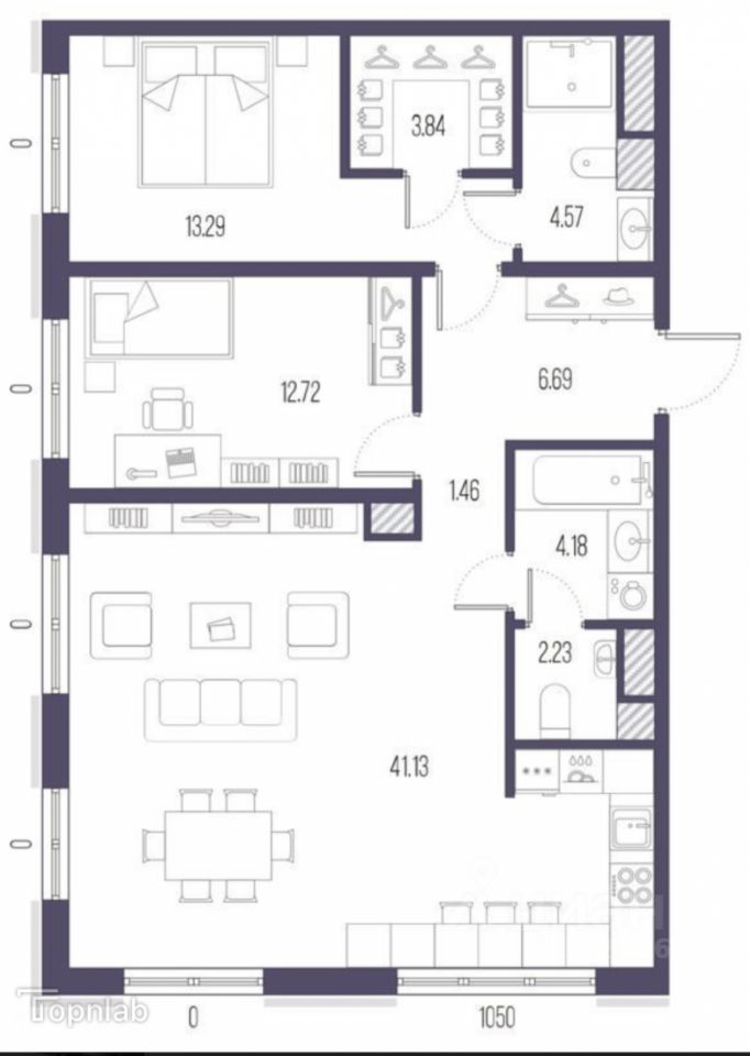 Видовая 3-евро более 90м² с огромной кухней-гостиной 41м²