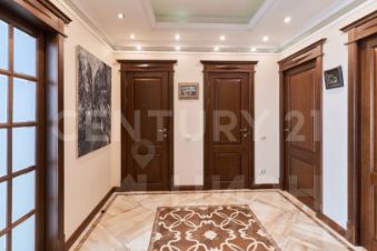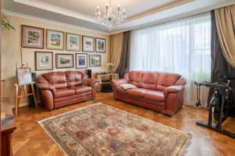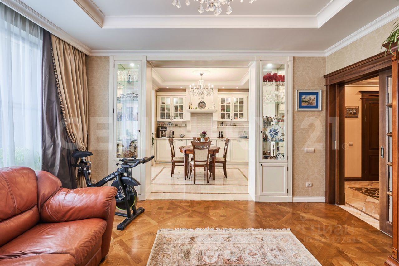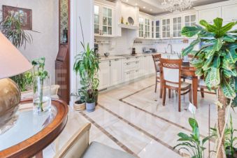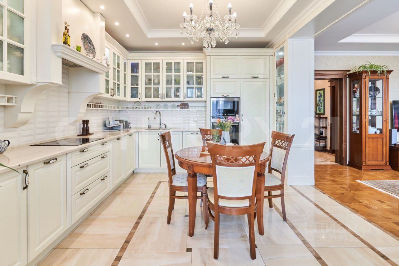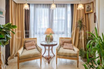 Главная зона — огромная гостиная, объединенная со столовой, — место для вдохновляющих встреч и уютных семейных вечеров. Каждый элемент интерьера продуман до мелочей: дизайнерский ремонт, выполненный в викторианском стиле, гармонично сочетается с изысканной итальянской мебелью из массива, придающей помещению тепло и статусность.