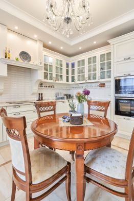 Кухня - настоящий кулинарный шедевр, оснащена фурнитурой Blum, которая обеспечивает удобство и долговечность. Люстры из чешского хрусталя создают атмосферу уюта и превращают каждое посещение в праздник света и стиля.